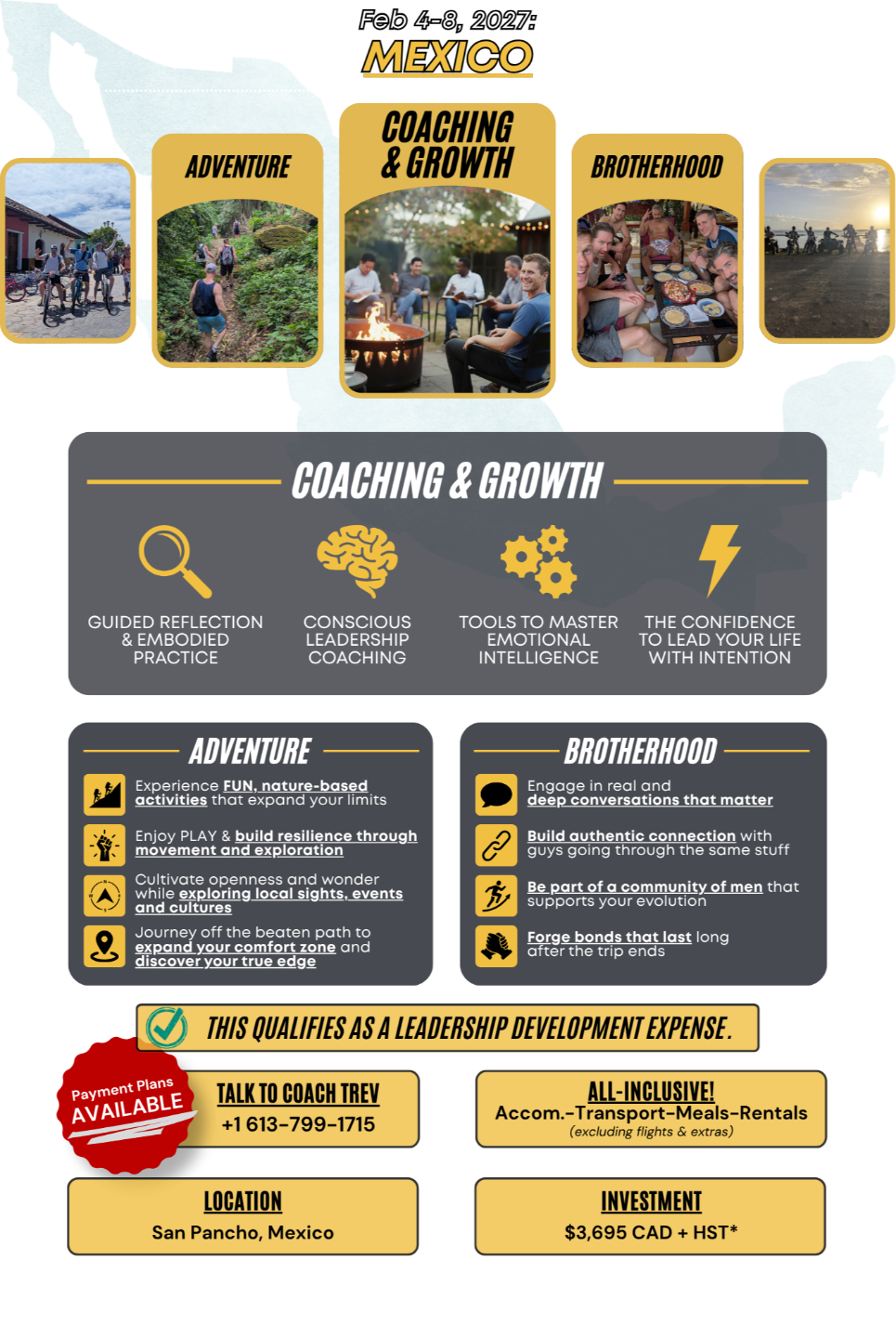 On February 4-8, 2027, join us for an unforgettable 5-day experience in the stunning landscapes of Mexico.